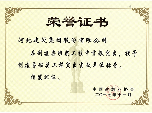 2017年創(chuàng)建魯班獎工程突出貢獻單位